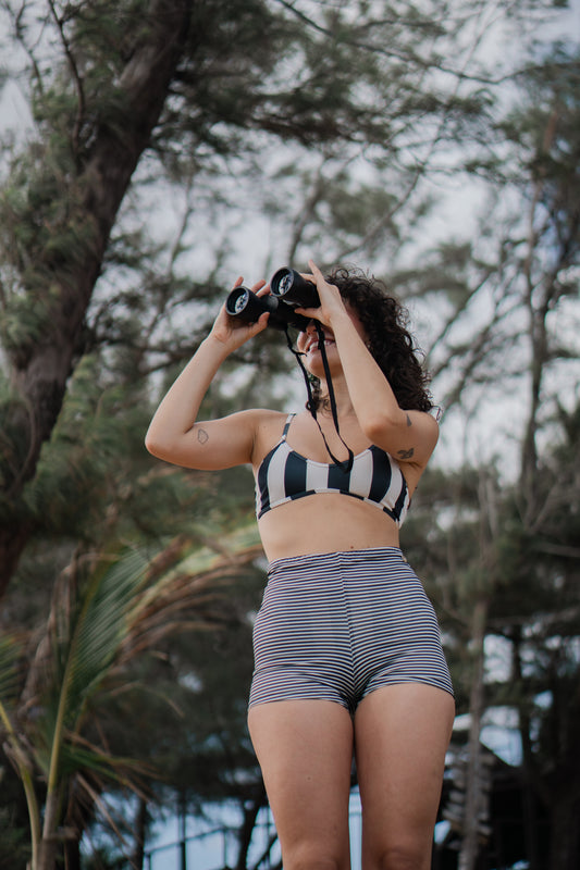 Top Cortininha | Print Listras Largas p&b Miçangas Geraldina