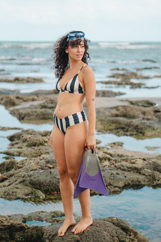Top Fixo Pence | Print Listras Largas p&b Miçangas Geraldina