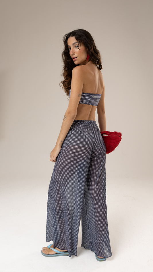 Calça Pantalona Tule | Print Mini Vichy Blue